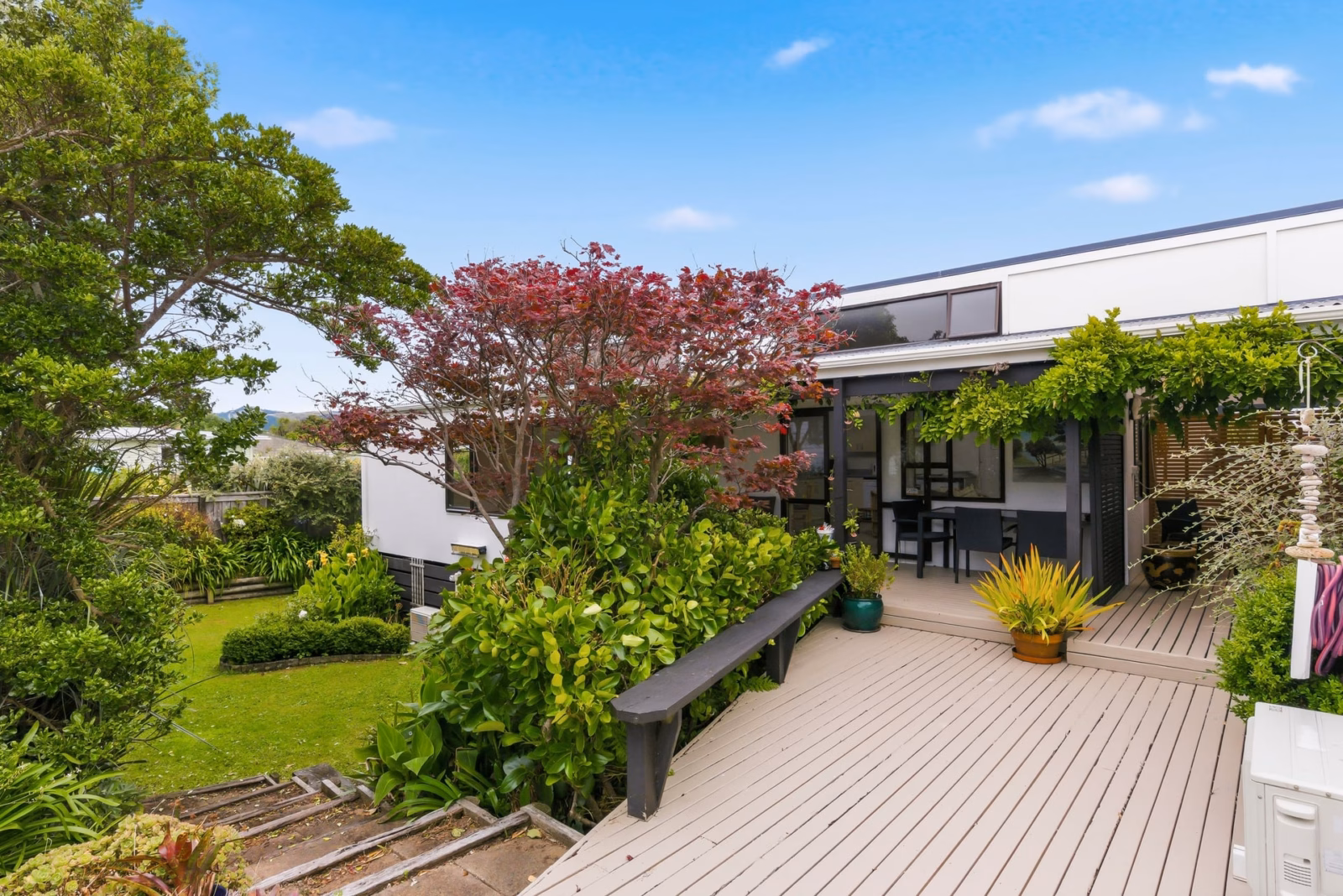 This wonderful character property offers SO MANY OPTIONS for so many people. Superbly positioned for all day sun, a very warm, light & bright home with a pleasant distant vista of Kapiti Island from the sun-drenched front deck, all quietly nestled amongst beautiful trees & cottage gardens across the road from the beach in one of Kapiti’s most iconic streets. Discover this beautifully presented family home plus bonus large & attractive SELF-CONTAINED 2-bedroom studio ideal for house sharing, inter-generational living, extended family members or a book-a-bach income stream to supplement your mortgage. The many features:
