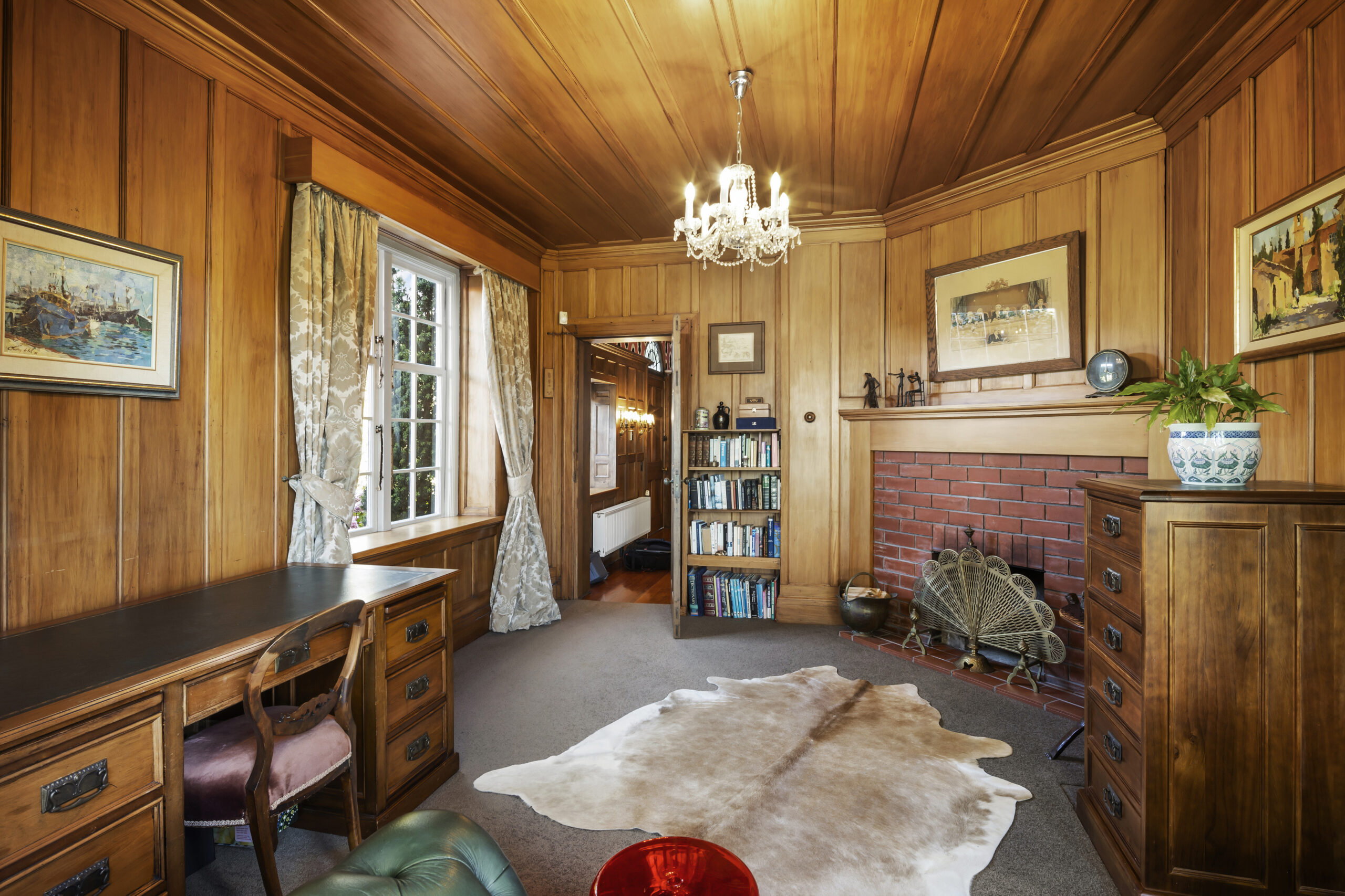 • Wood panelled study with a working open fire