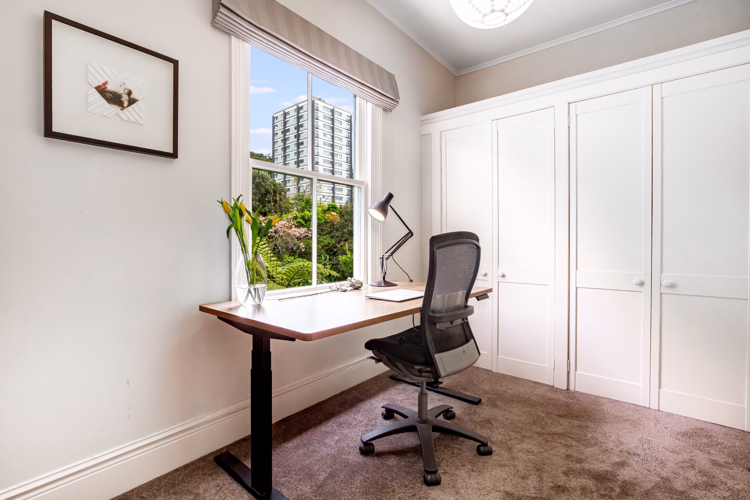 Thorndon character abounds, with period timbers, a classic staircase, high ceilings, bay windows, and a beautiful cottage garden bursting with summer colour -mostly sheltered from the prevailing winds.