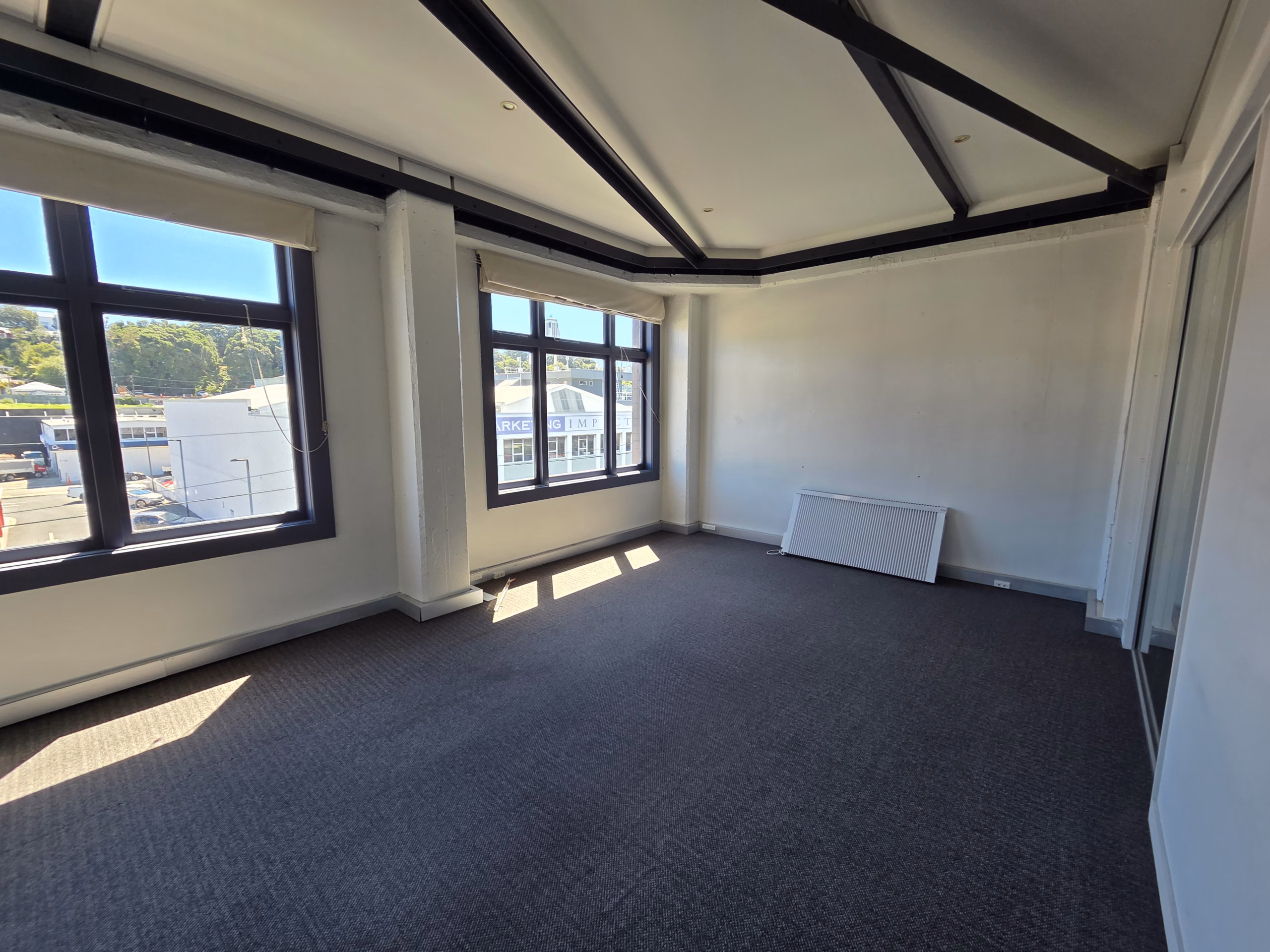 A stylish New York loft-inspired office on Level 2, 13 Adelaide Road, featuring an open-plan layout, great natural light, and excellent transport access-perfect for creative teams or modern businesses.