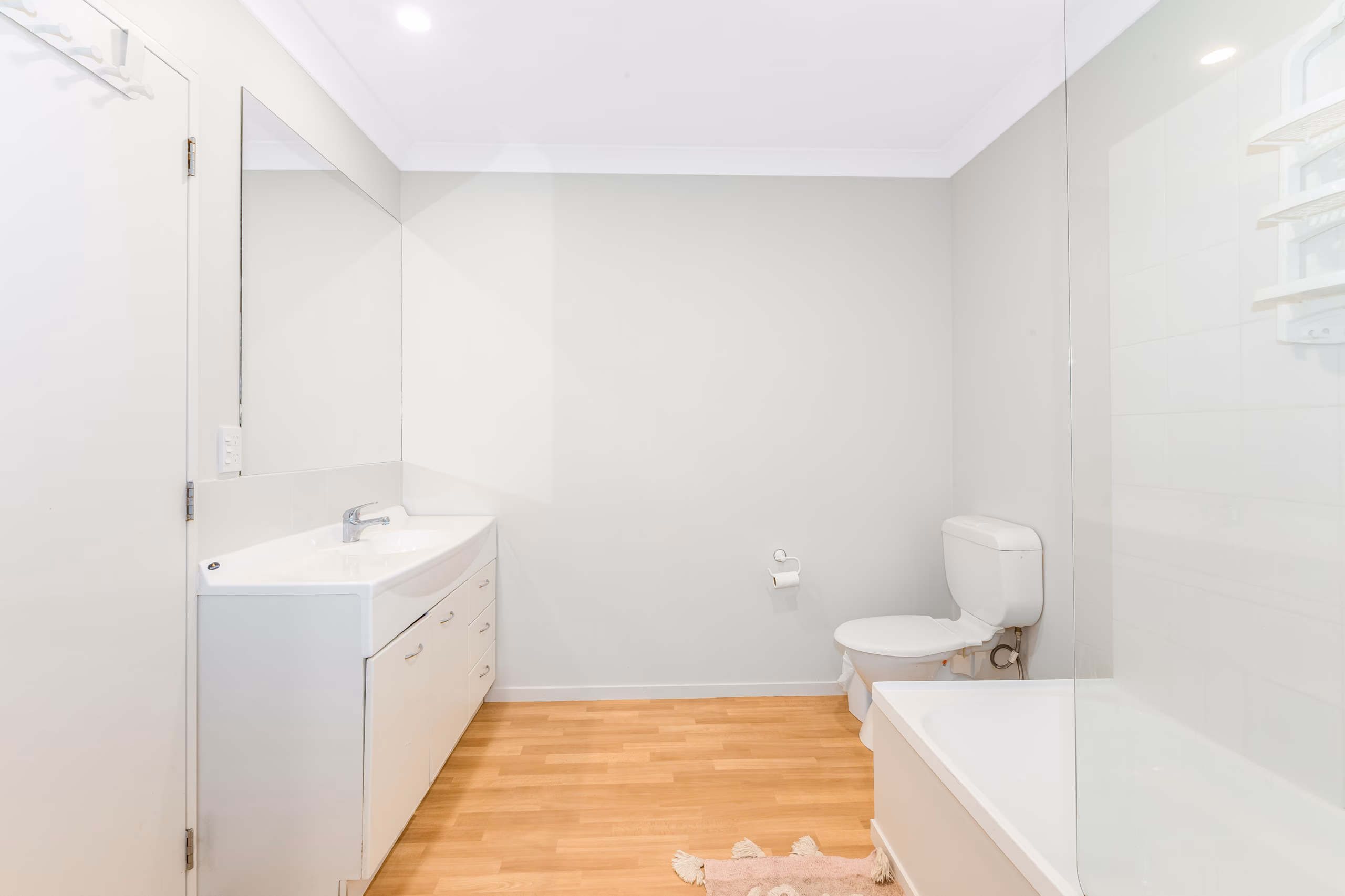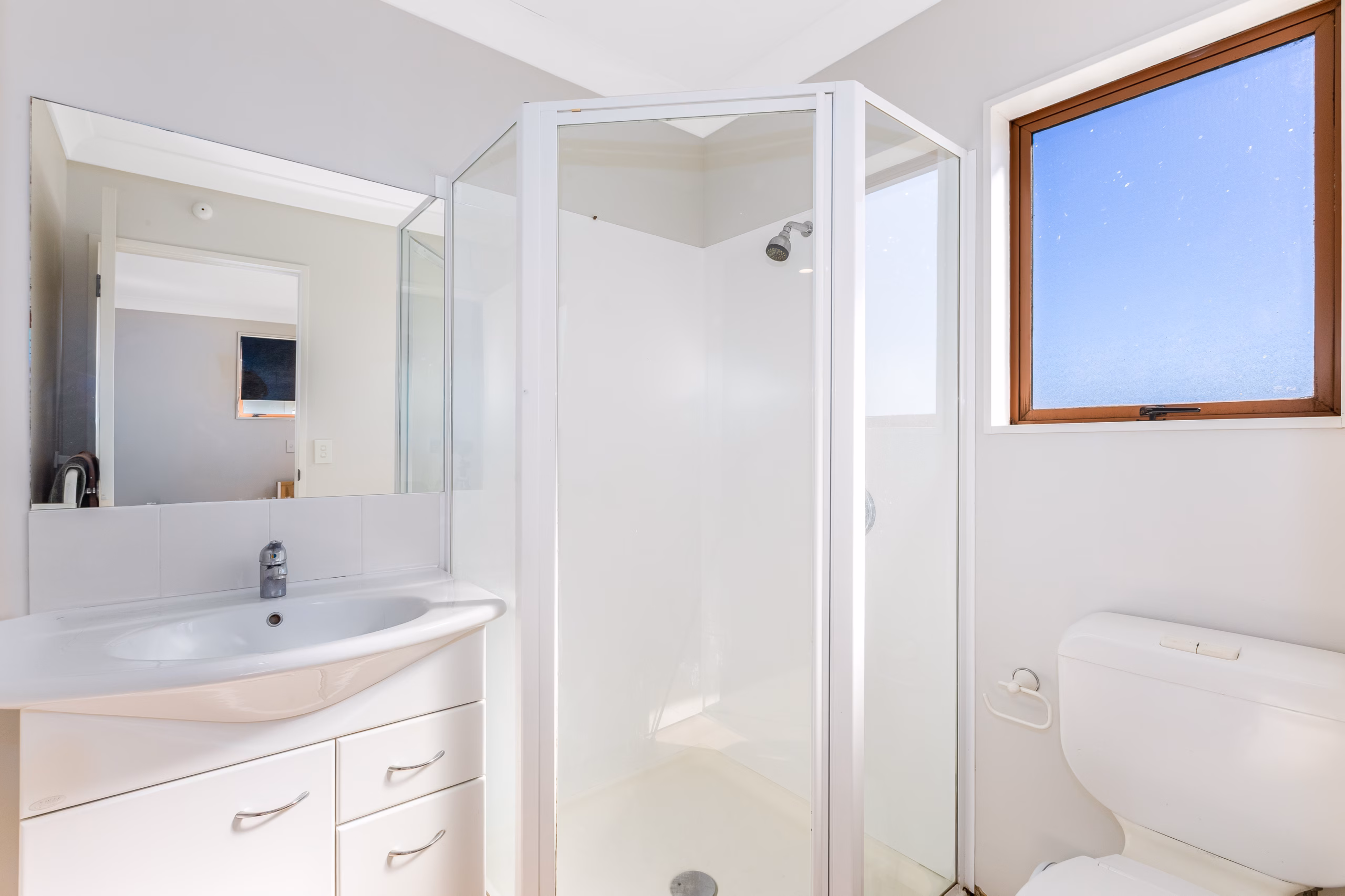• Stylish family bathroom including a bath, plus a separate guest toilet off the living level for added convenience.