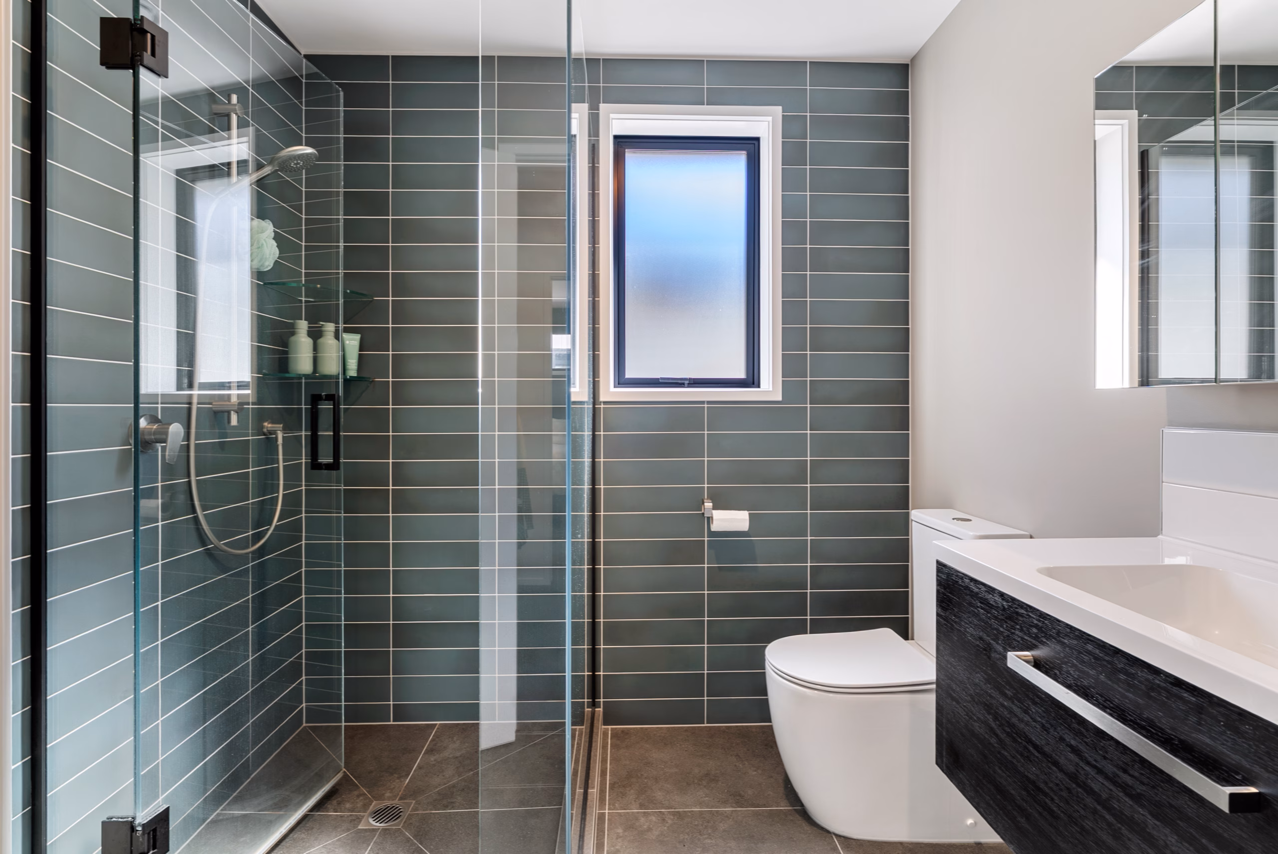 • Large family bathroom with bath + wet area shower