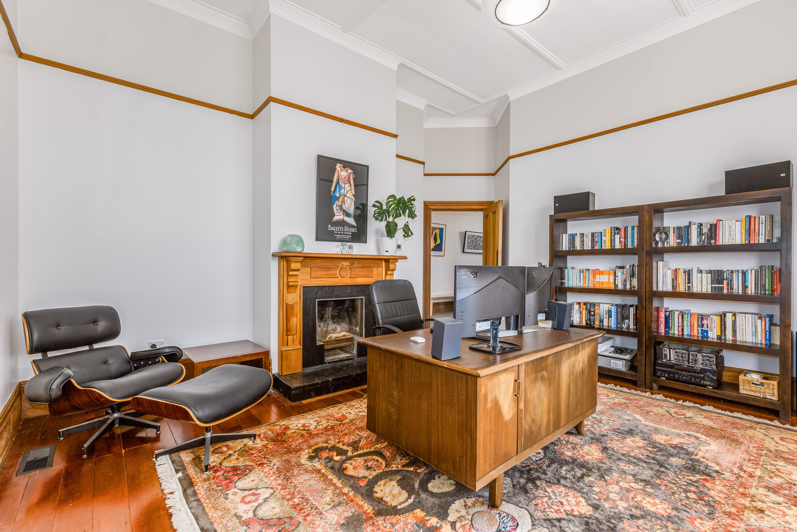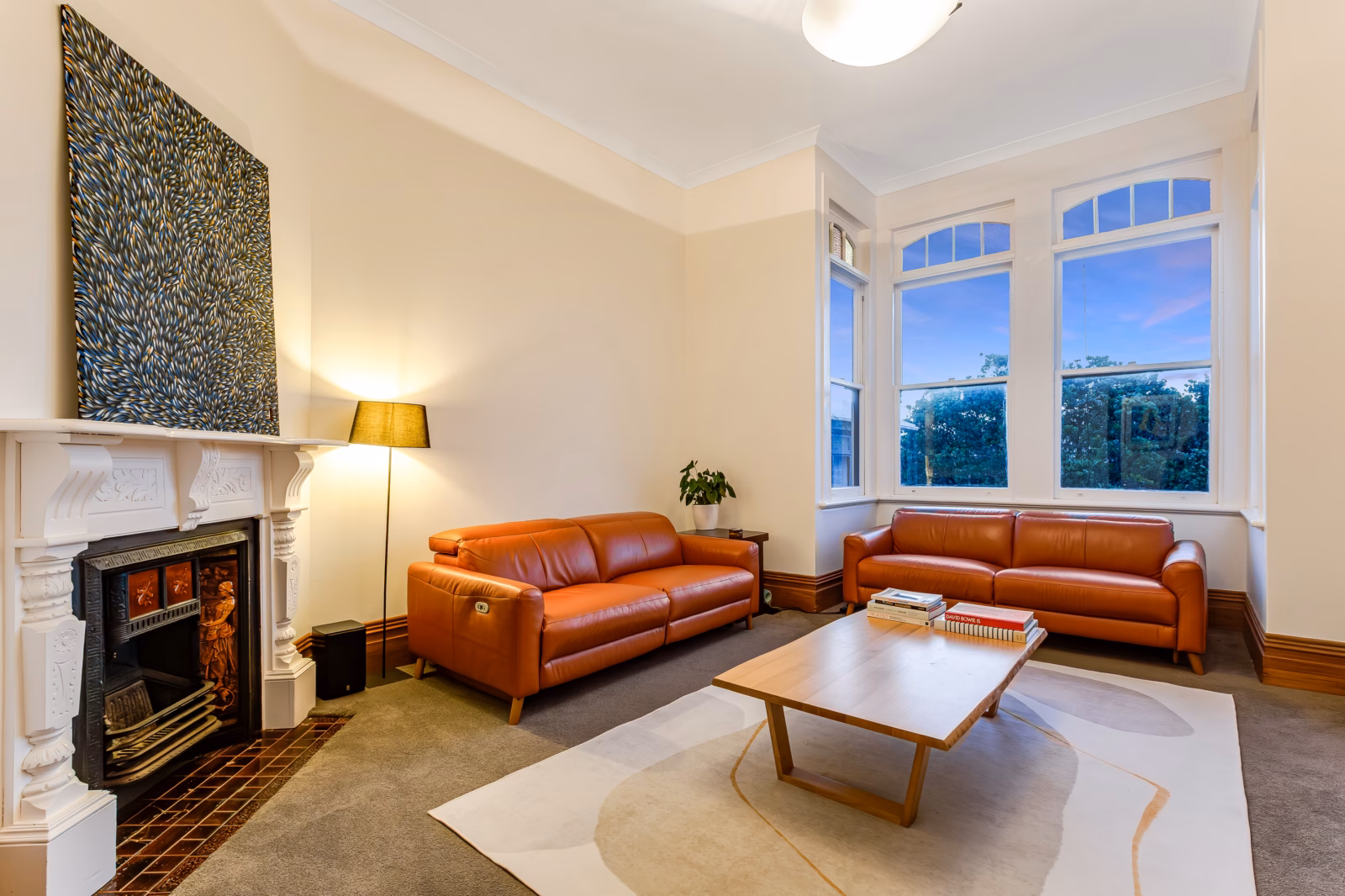 • Two beautifully appointed living rooms, each with original feature fireplaces and west-facing sunshine looking out over Newtown and beyond
