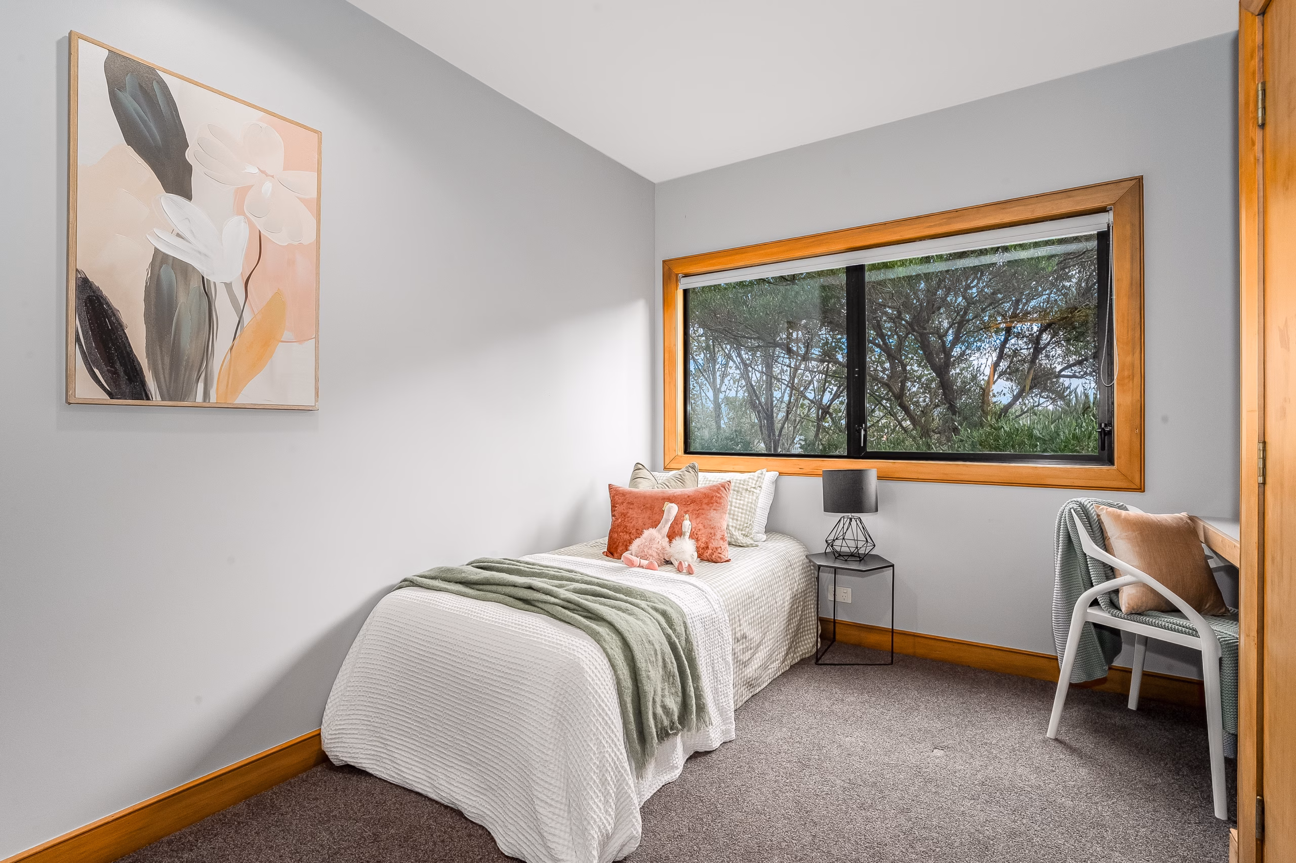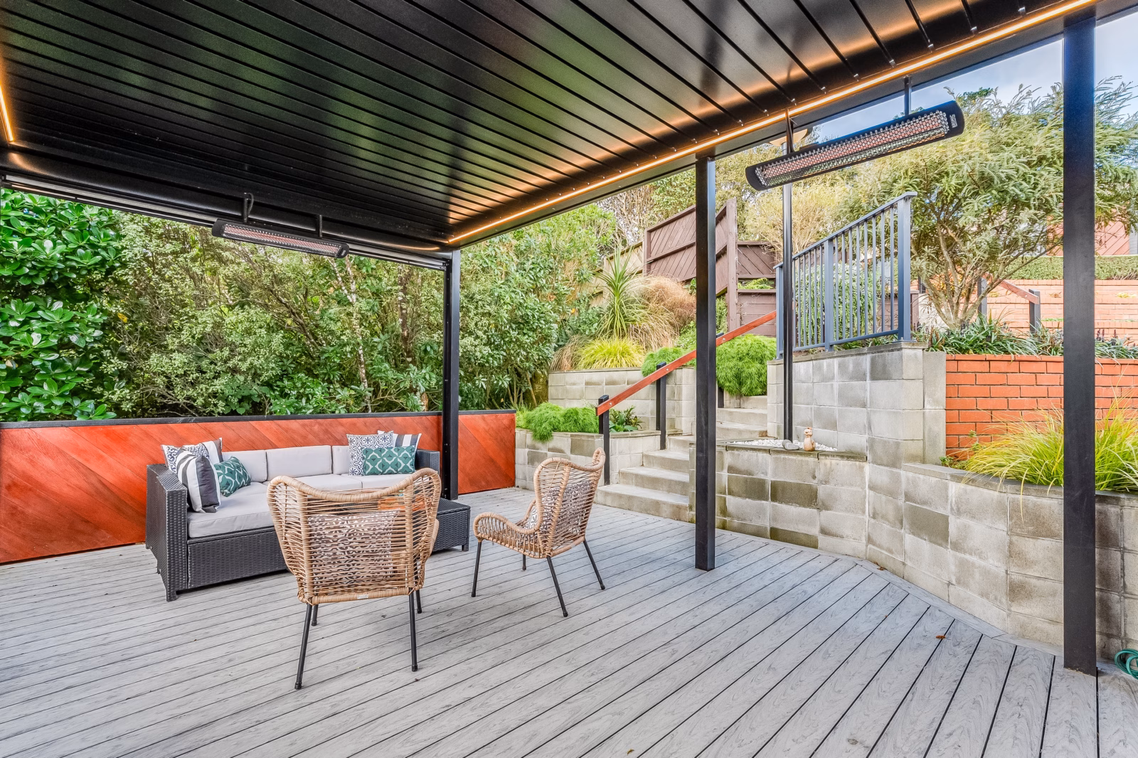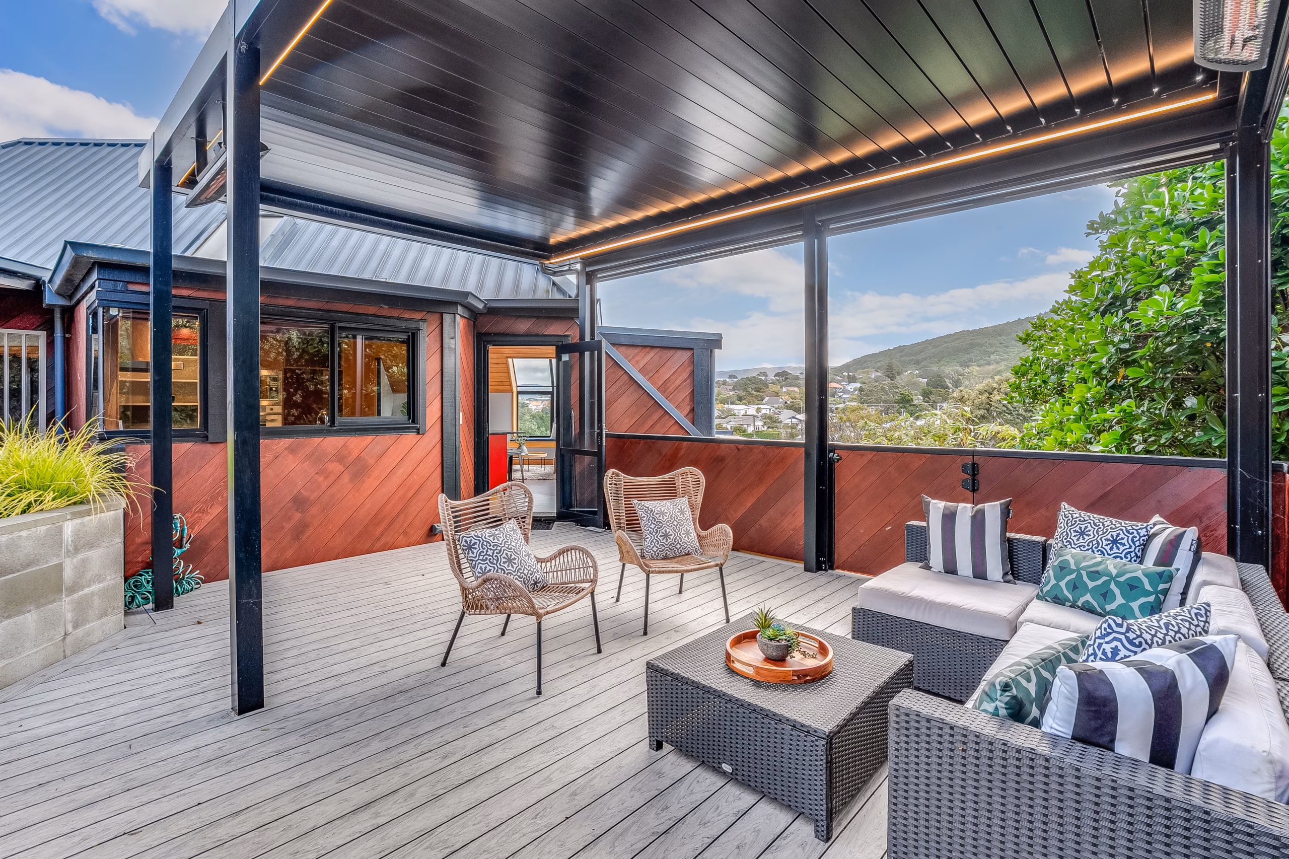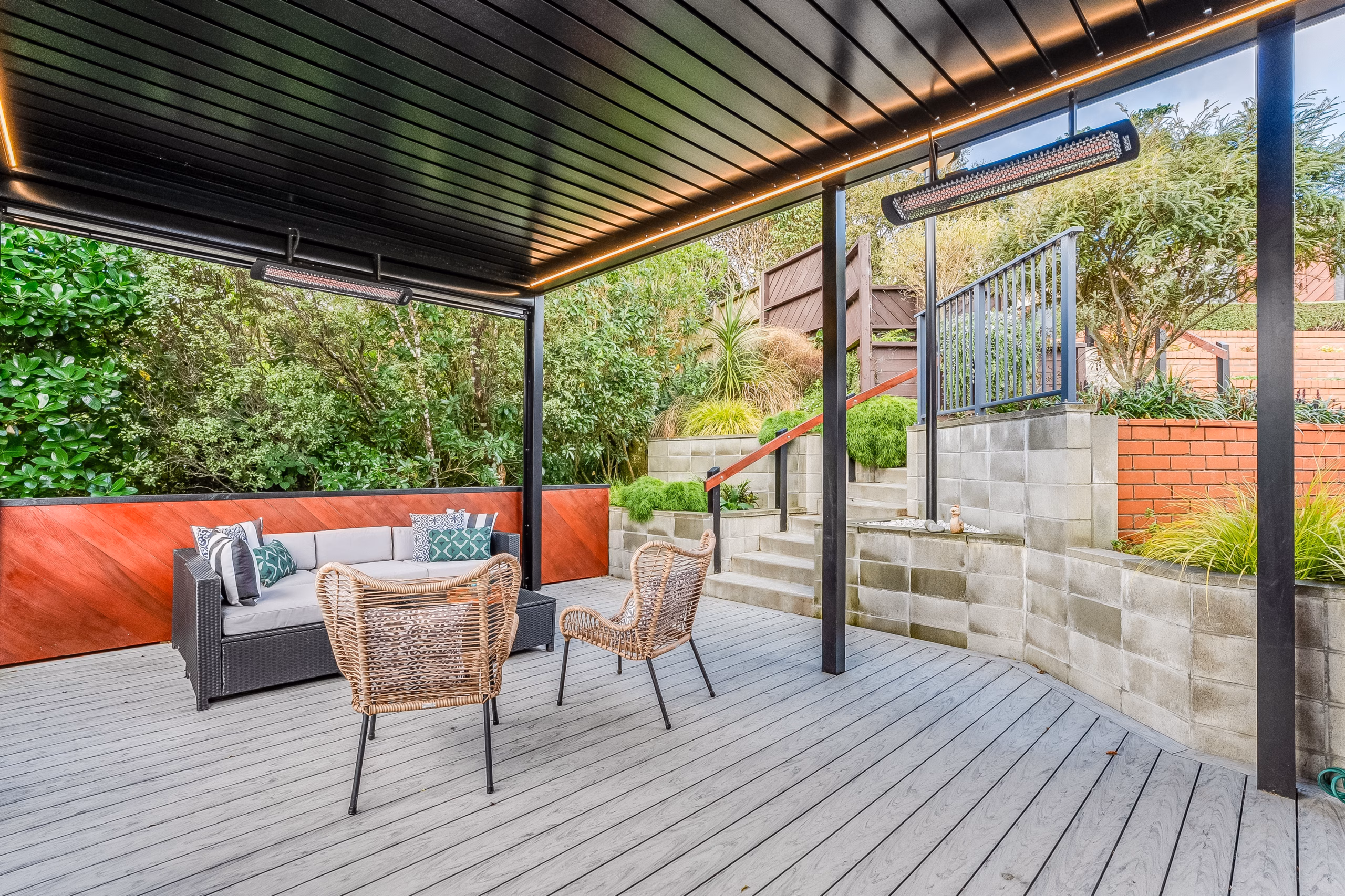 A standout feature is the covered louvred deck, which enhances the home’s indoor/outdoor connection and adapts easily to the seasons – whether you’re hosting friends, enjoying a quiet evening beneath the stars, or settling in for a family movie night. It’s a practical and inviting extension of the living areas.