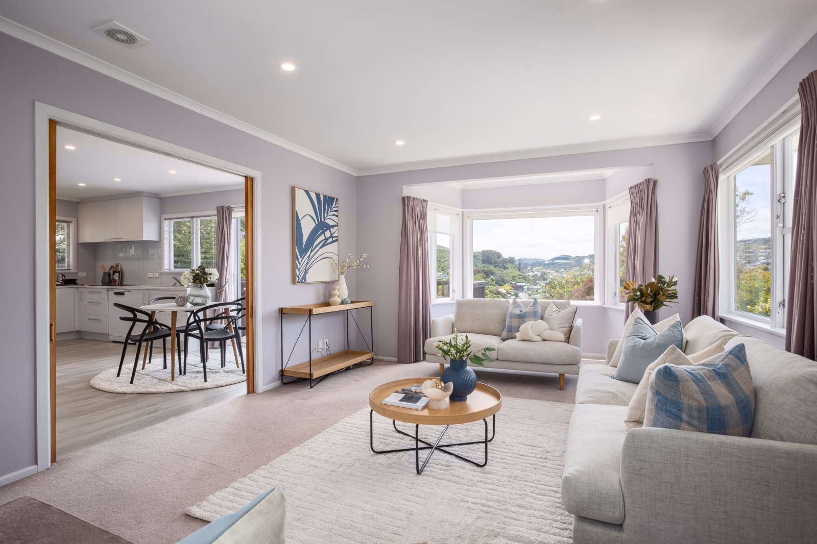 • Spacious, sunny open plan kitchen and dining room, adjoining lounge with sliding doors extend into the living space with sunny bay window, heat pump and cozy wood burner for cooler evenings