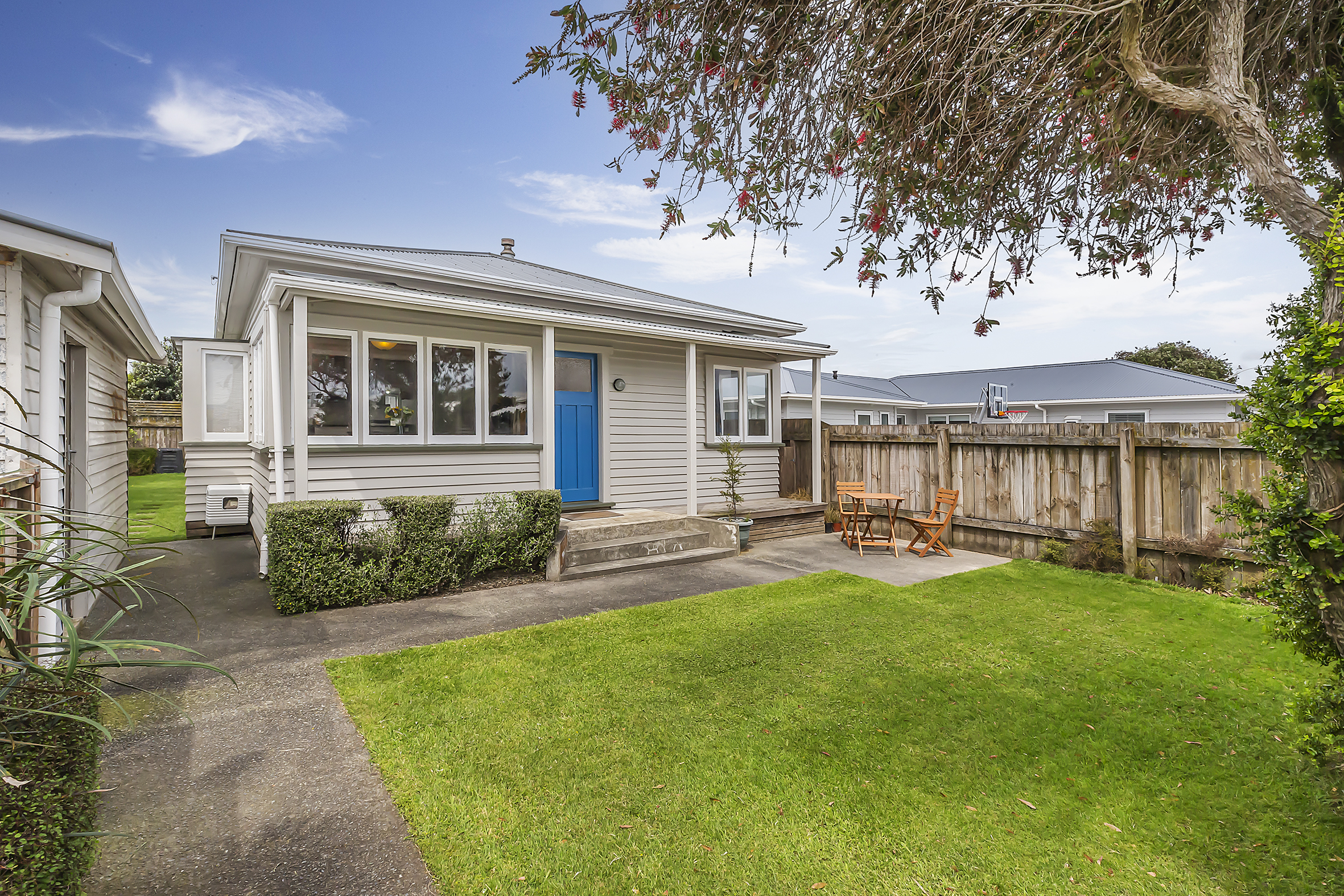 Endearingly quaint following a repaint and spruced with a new roof set on fully fenced lawns on an easily manageable section complete with garden shed, single garage and tennis courts right over the road.