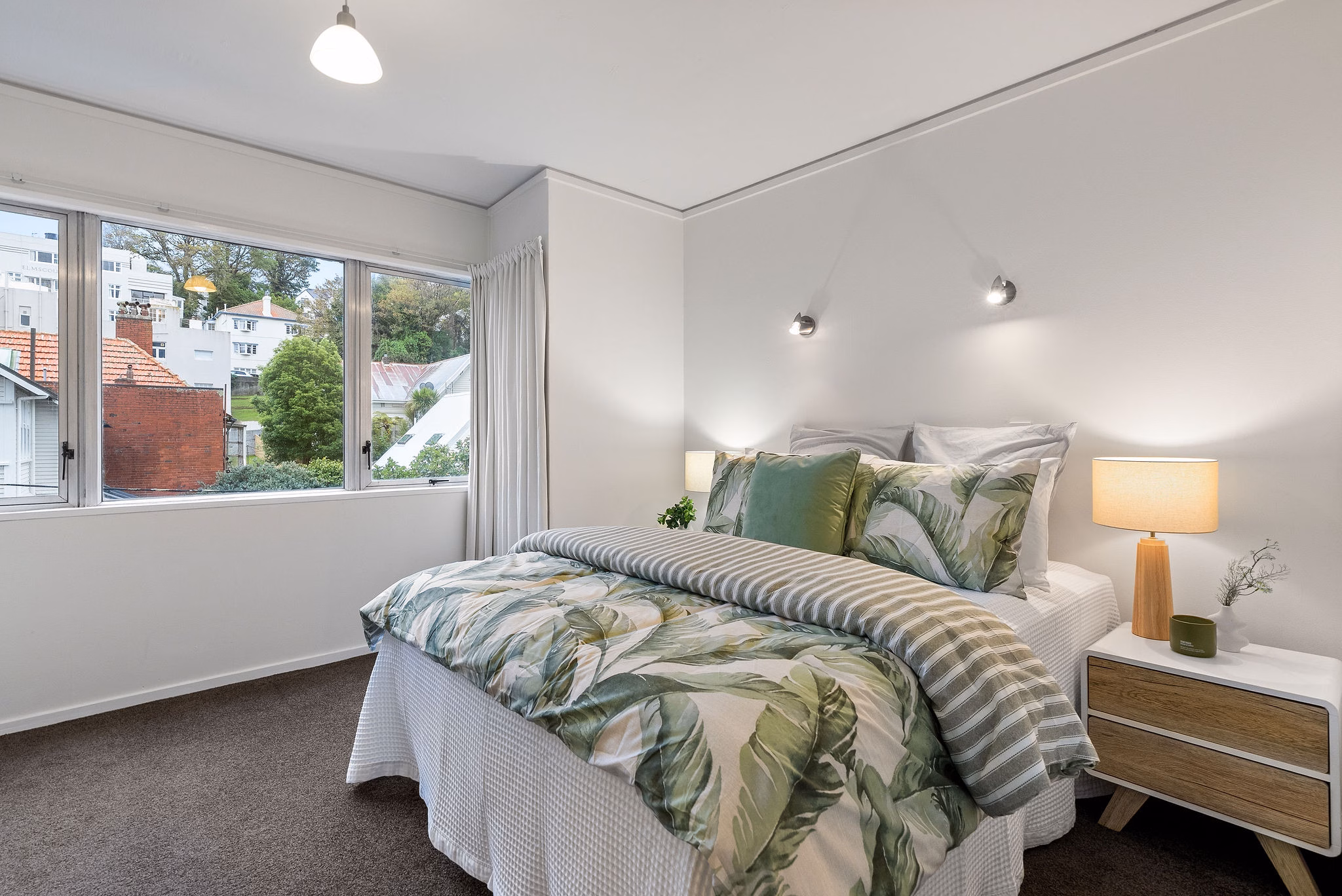 • Leafy outlook with a combination of trees and cityscape views