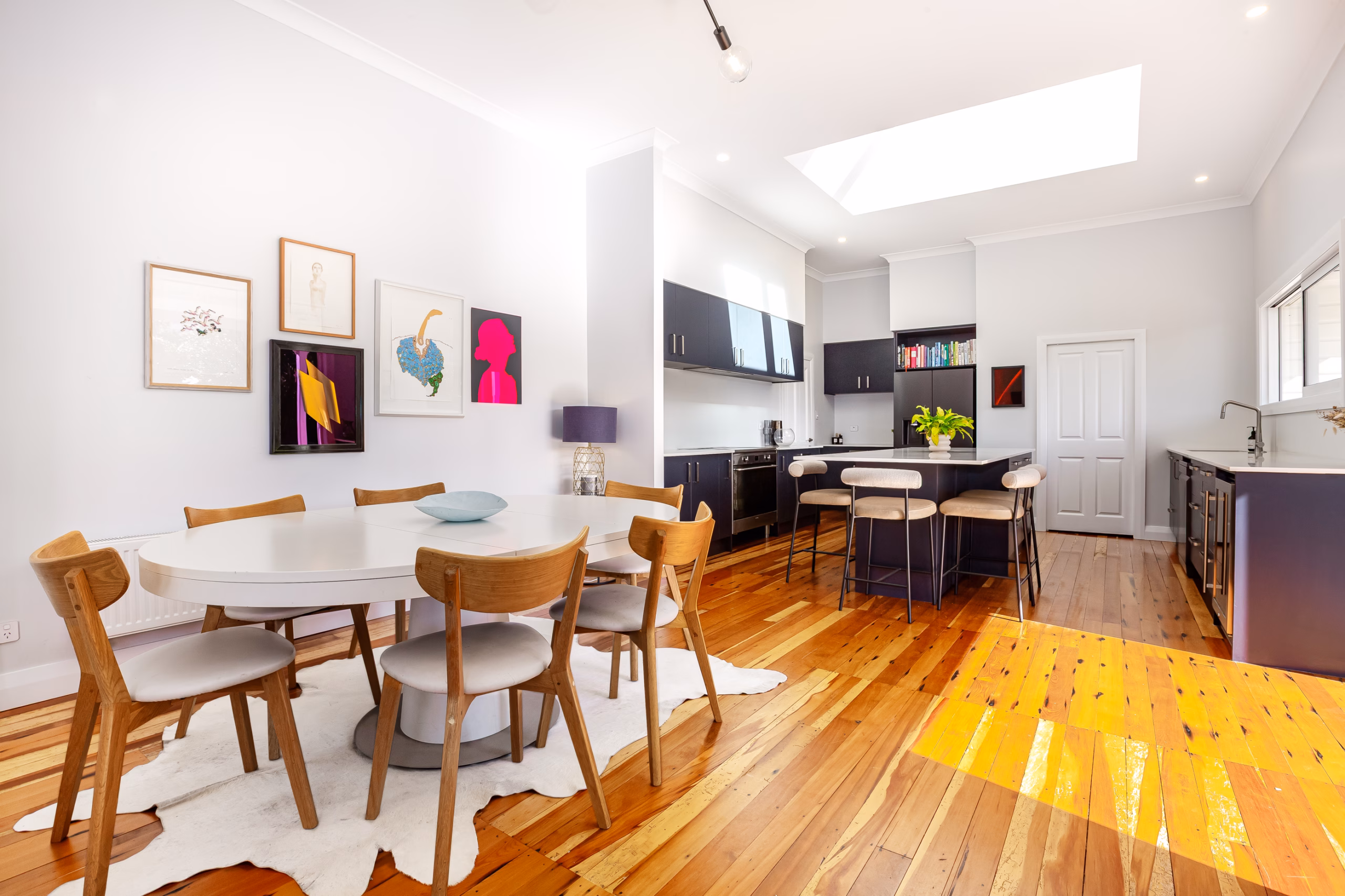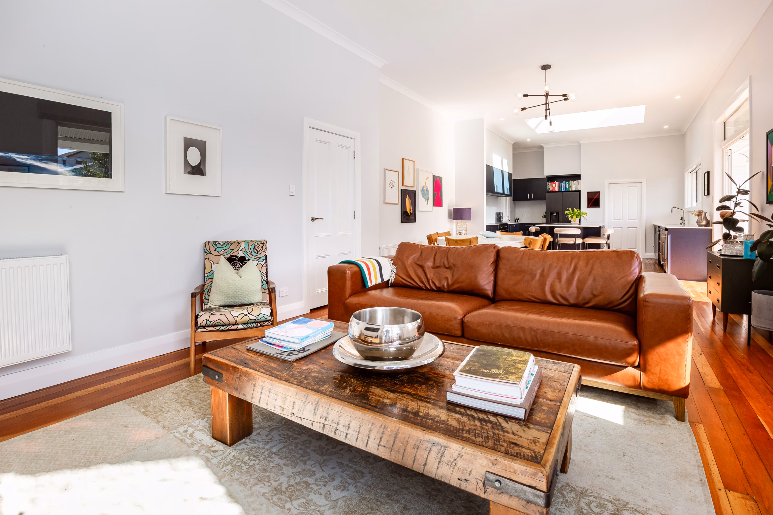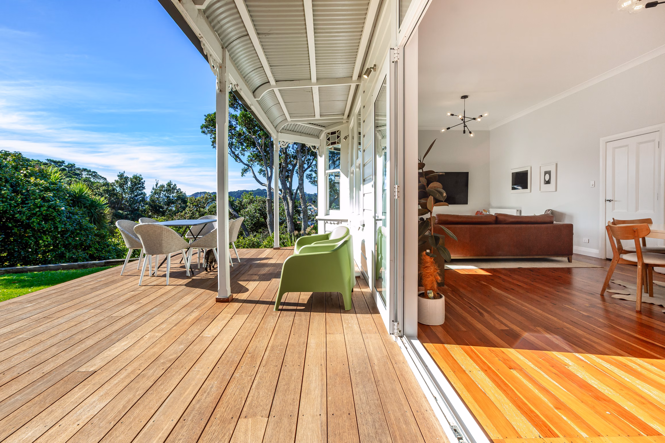 – Spacious and sunny open plan family kitchen, dining and living room pouring out onto the north facing deck and flat lawn and private garden area