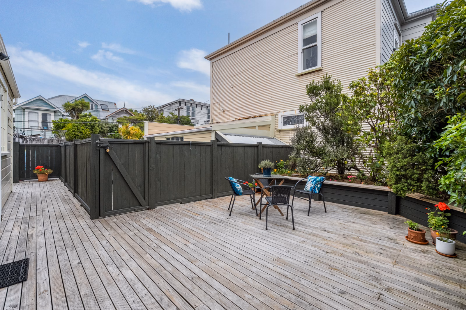 • Rear sunny deck and courtyard surrounded with low maintenance garden is fully fenced