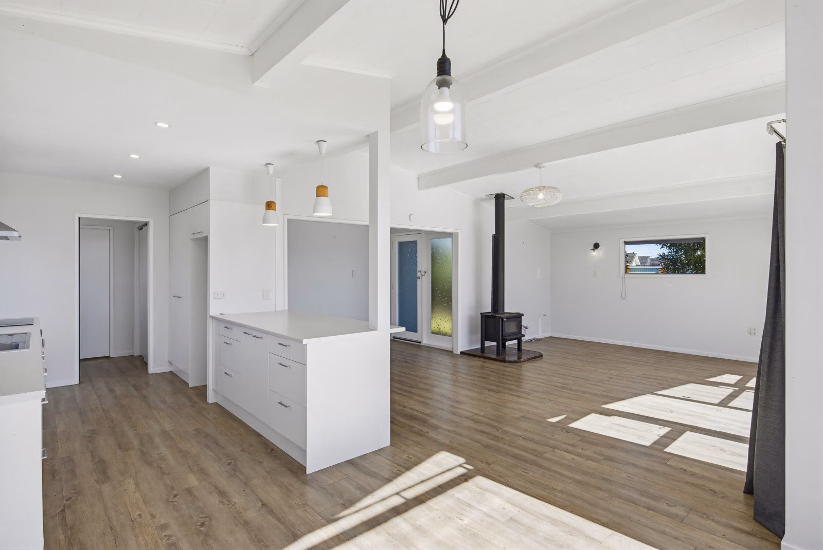 Step inside to a light-filled, open-plan living space where clean lines and a fresh, contemporary palette create a calm, inviting atmosphere. Expansive windows and sliding doors seamlessly connect indoors to a sun-soaked deck-perfect for entertaining, relaxing, or simply enjoying the peaceful surroundings.