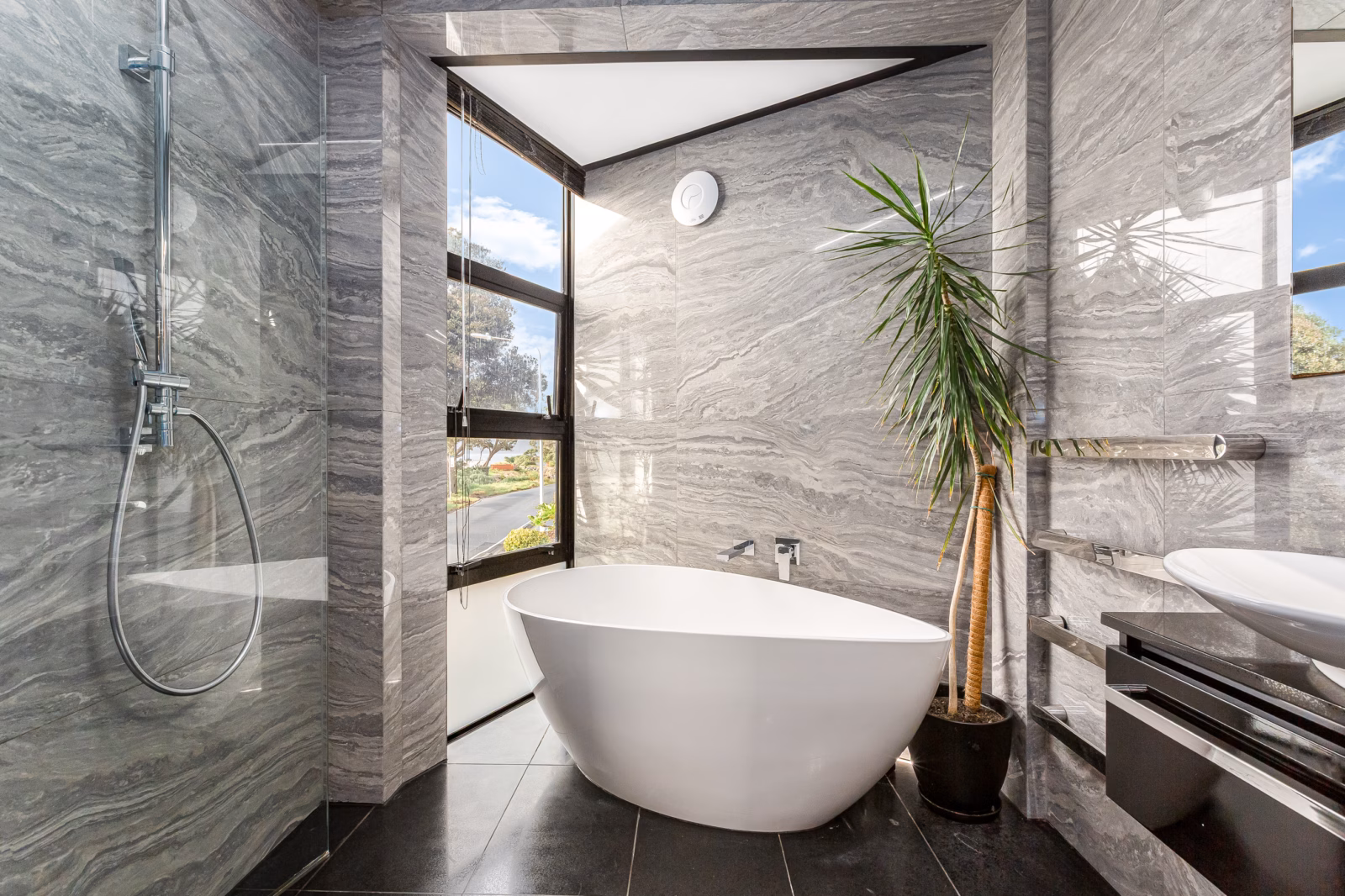 • Floor-to-ceiling privacy windows maximise sun and natural light
