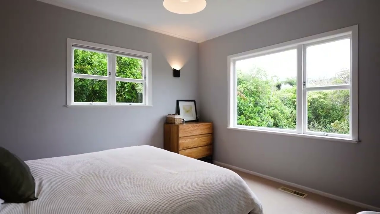With a tidy three-bedroom home upstairs and a renovated two bedroom flat below, generous off street parking, large outdoor area, and spectacular harbour views – this is a rare home and income opportunity in one of Khandallah’s most coveted locations.