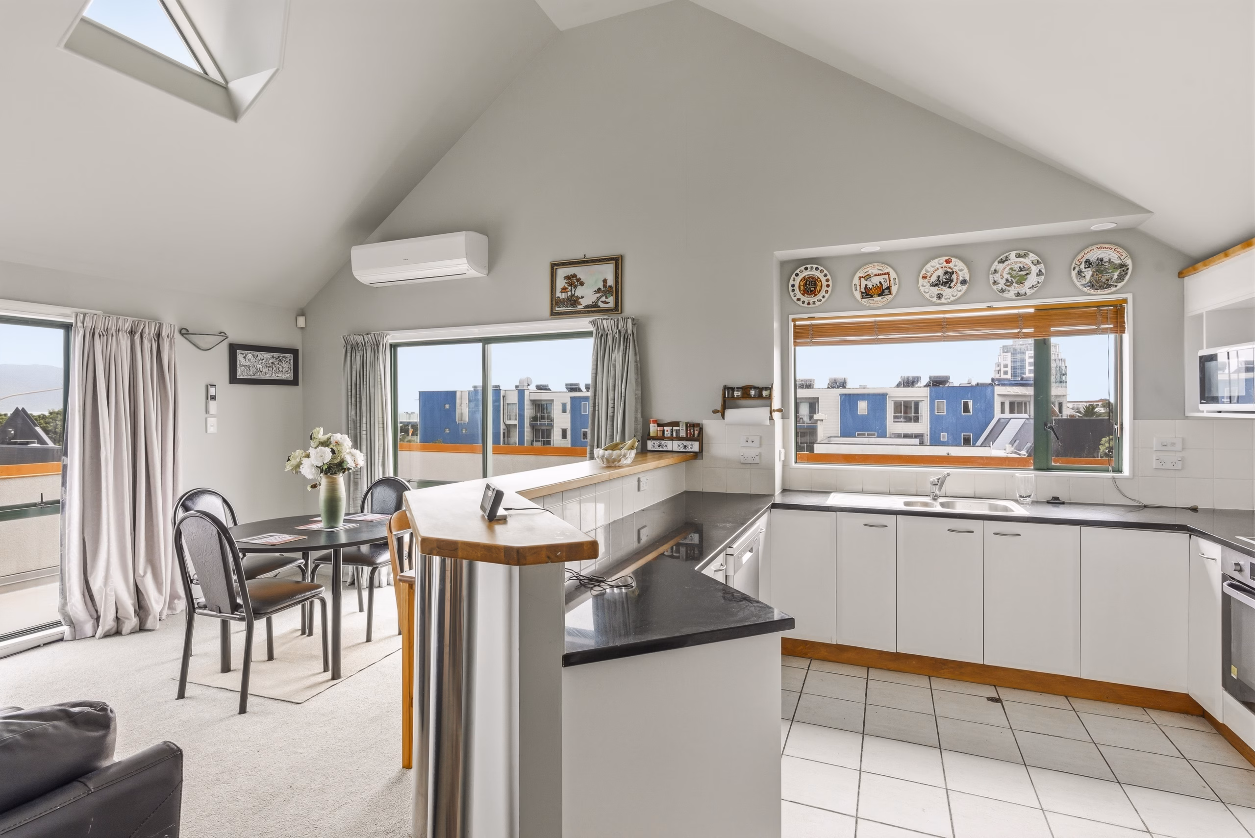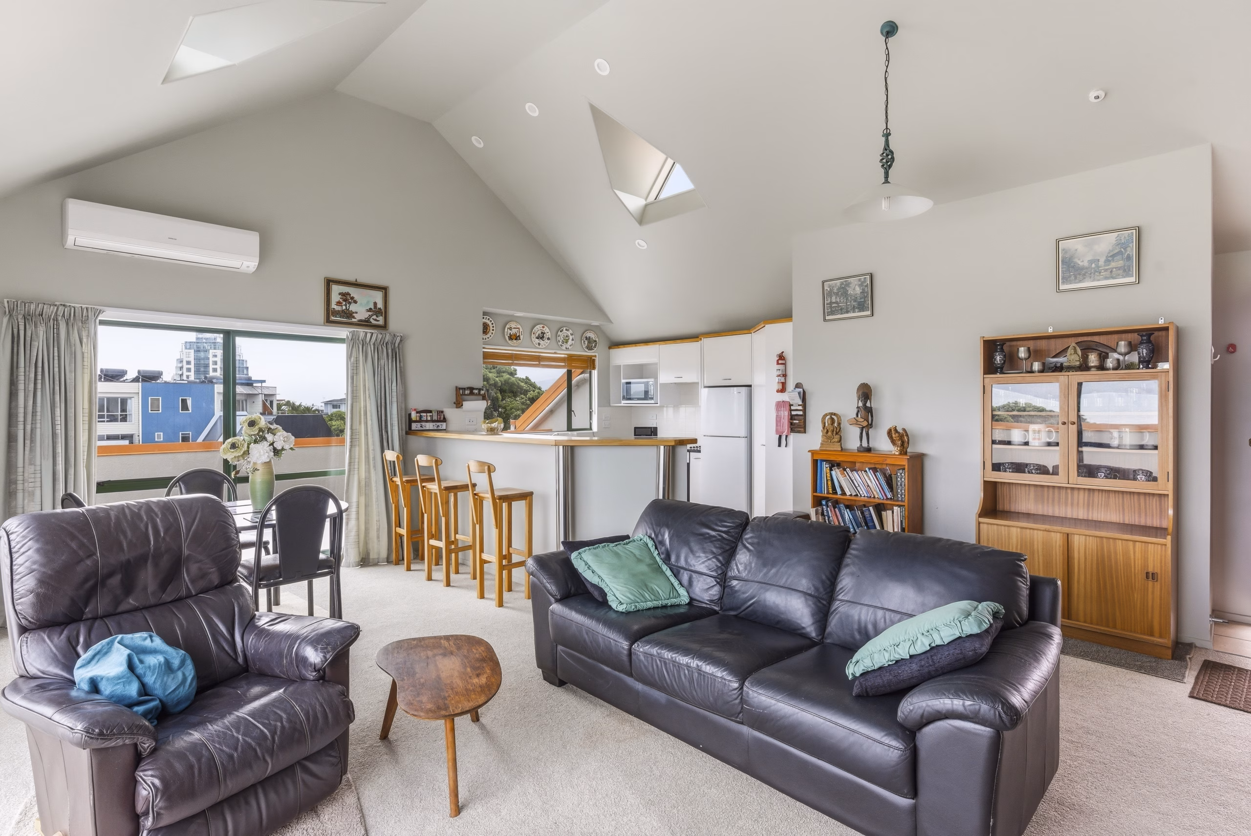 Just moments from the shoreline in one of the Kapiti Coast’s most tightly held beachside pockets, this elevated two-bedroom, two-bathroom plus study residence offers generous proportions, all-day sun and sea views – scope to refresh and add value.