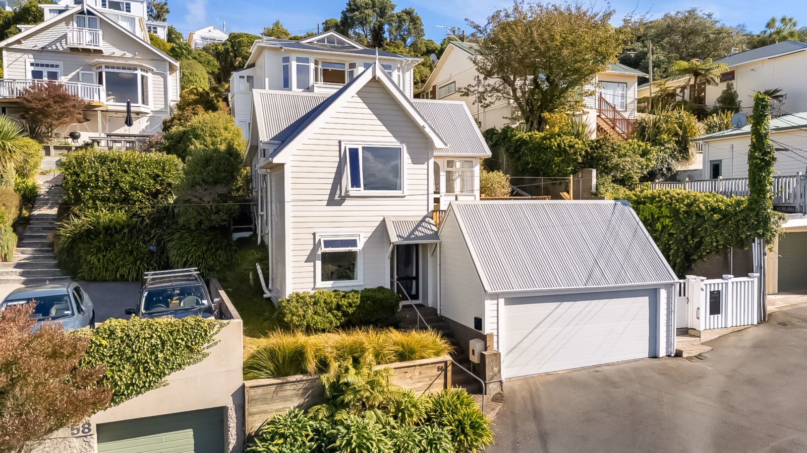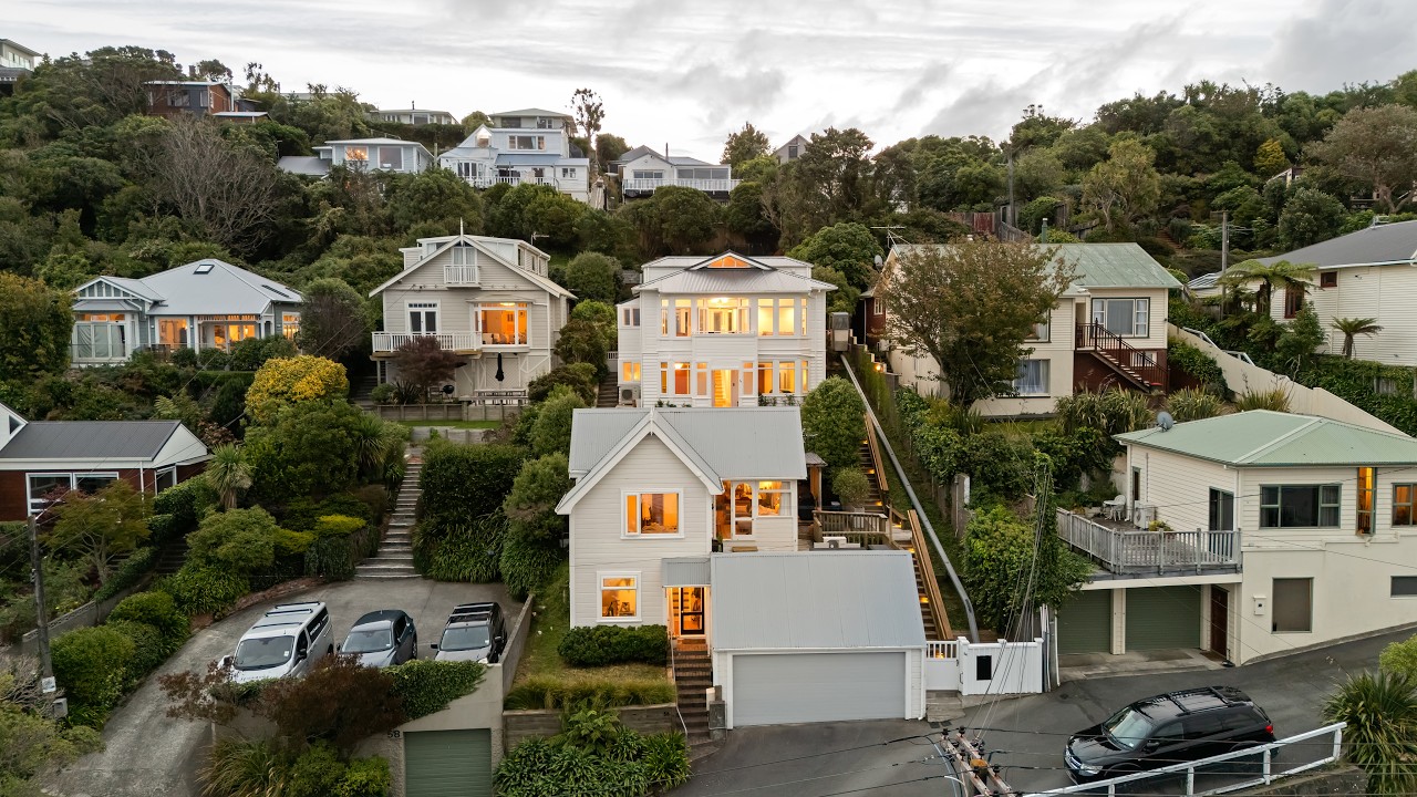Perched proudly in the heart of Brooklyn, 54/56 Mitchell Street presents a truly rare opportunity-two beautiful homes on one title, offering flexibility, income potential, and breath-taking views across Wellington Harbour. The iconic “White House” at number 54 is a standout residence, perfectly positioned for all-day sun and sweeping 180-degree panoramas, where sparkling city lights meet expansive harbour vistas. Complementing this is number 56, a cleverly designed modern home-ideal for extended family, guests, or a strong rental income stream.