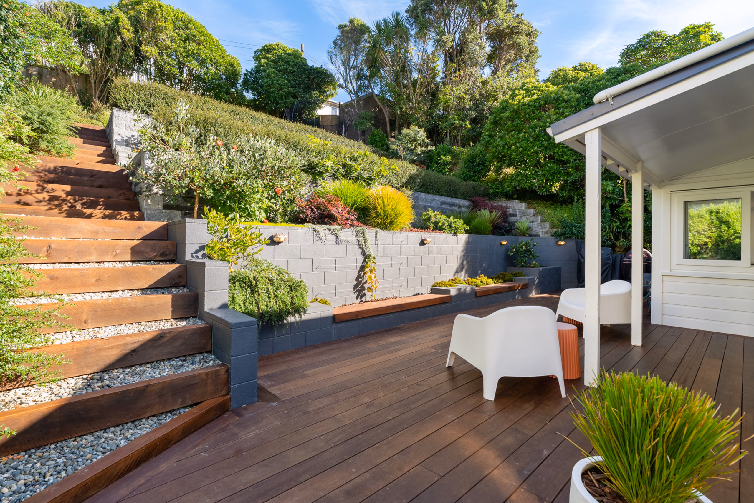 • Architecturally designed, landscaped terraced lawn and garden