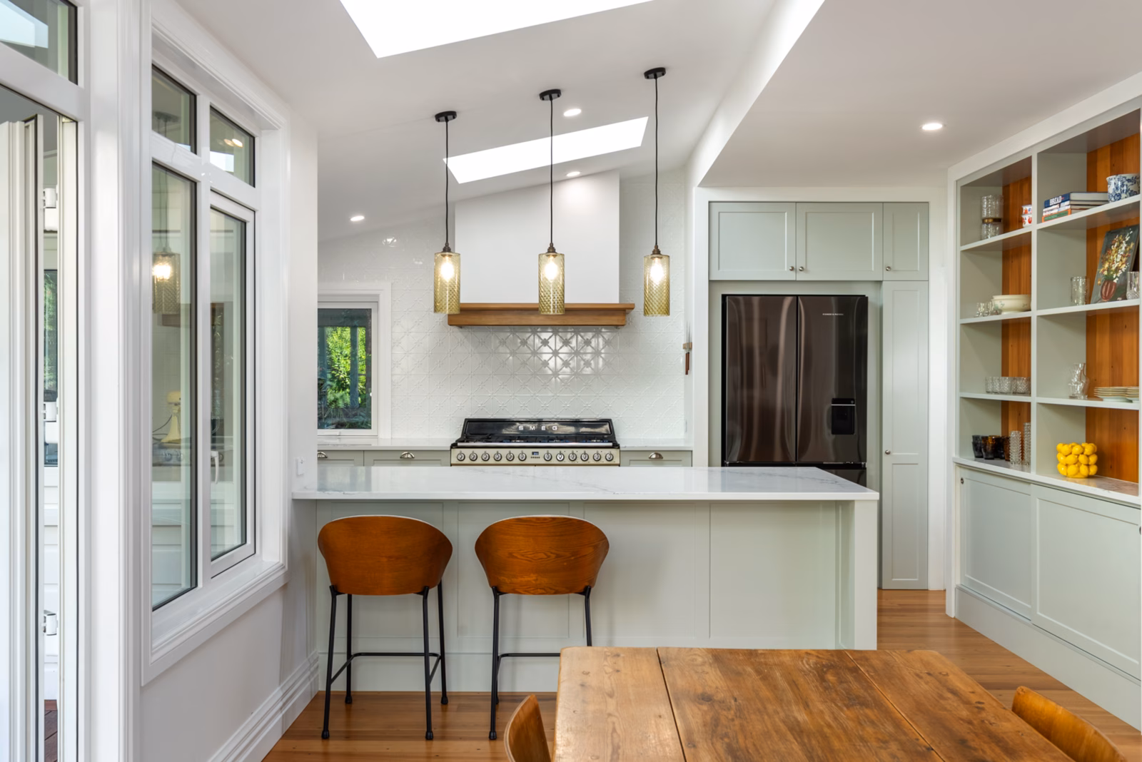 • Contemporary open-plan kitchen, living, and dining