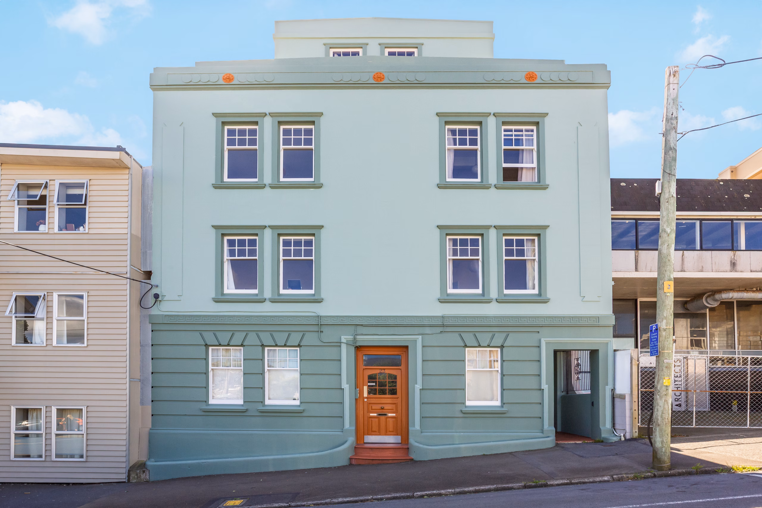High ceilings, rimu-framed windows and retained Art Deco detailing give the interior depth and personality. It is a space that feels authentic and thoughtfully enjoyed.
