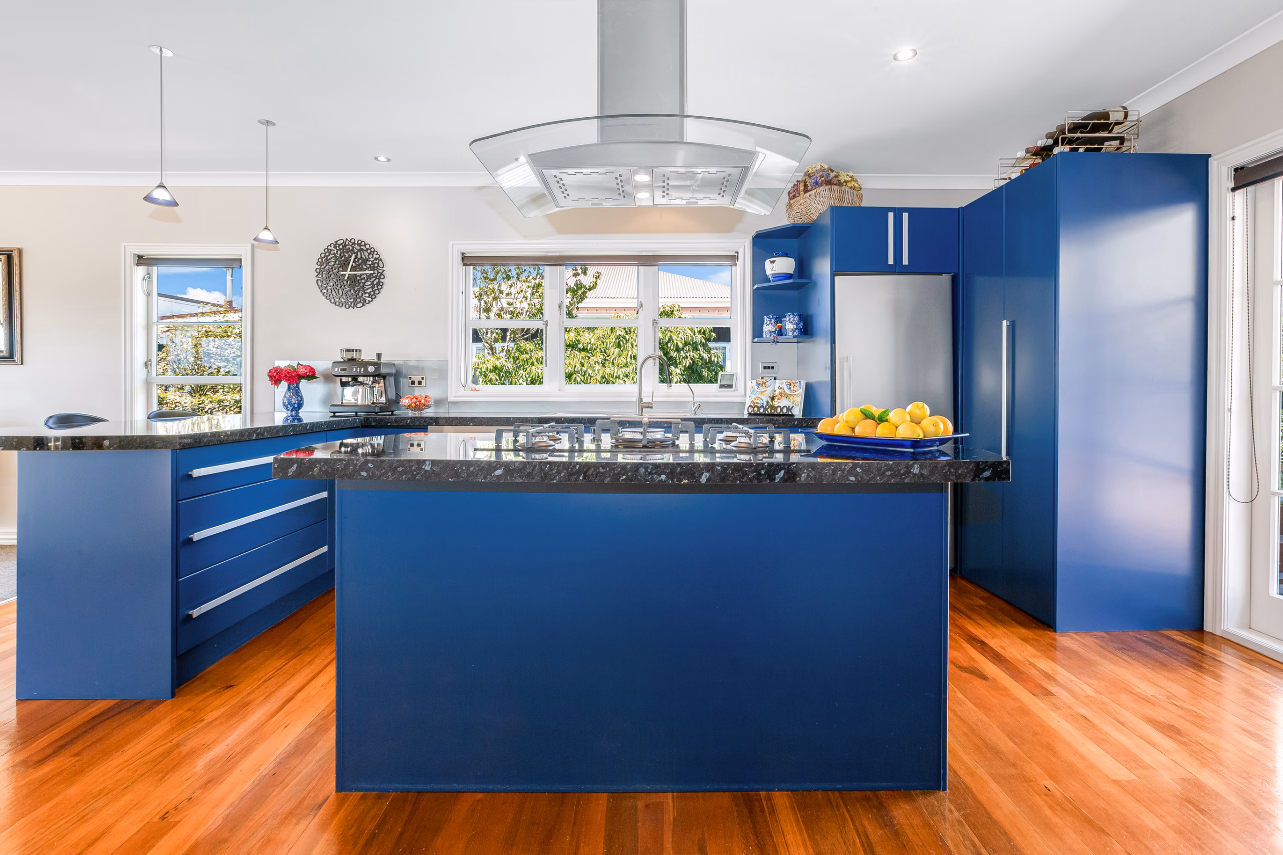 At the heart of the home is the expansive open-plan kitchen, dining and family room – a true hub where everyone naturally gathers. From here, seamless indoor-outdoor flow leads to a generous patio and BBQ area, perfectly positioned to soak up the sun and the stunning inlet views.