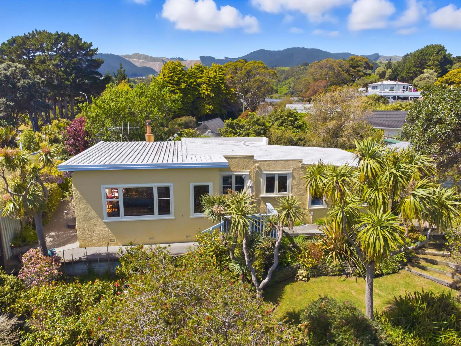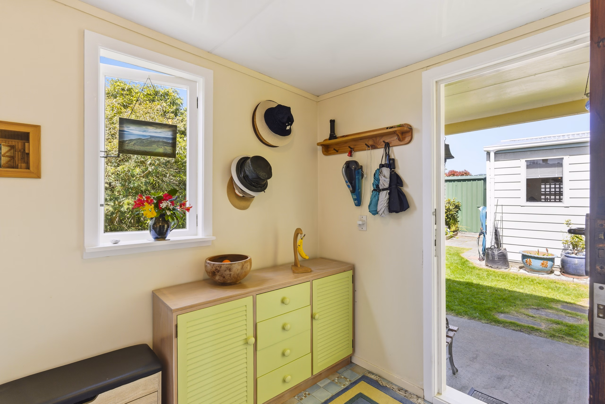 Welcome to your dream retreat! This charming 3 bedroom character cottage is beautifully positioned to offer a real sense of private tranquility, set within the hub of Raumati Beach & amidst beautifully terraced gardens. You’ll enjoy all day sun & the ever-changing distant views & sunsets over Kapiti Island that will leave you in awe every evening. Inside, admire the exquisite stained glass adorning the lounge door & window, a stunning piece commissioned by Olaf Wehr-Candler from Pukerua Glass Studio, adding a unique touch of art to this lovely home.