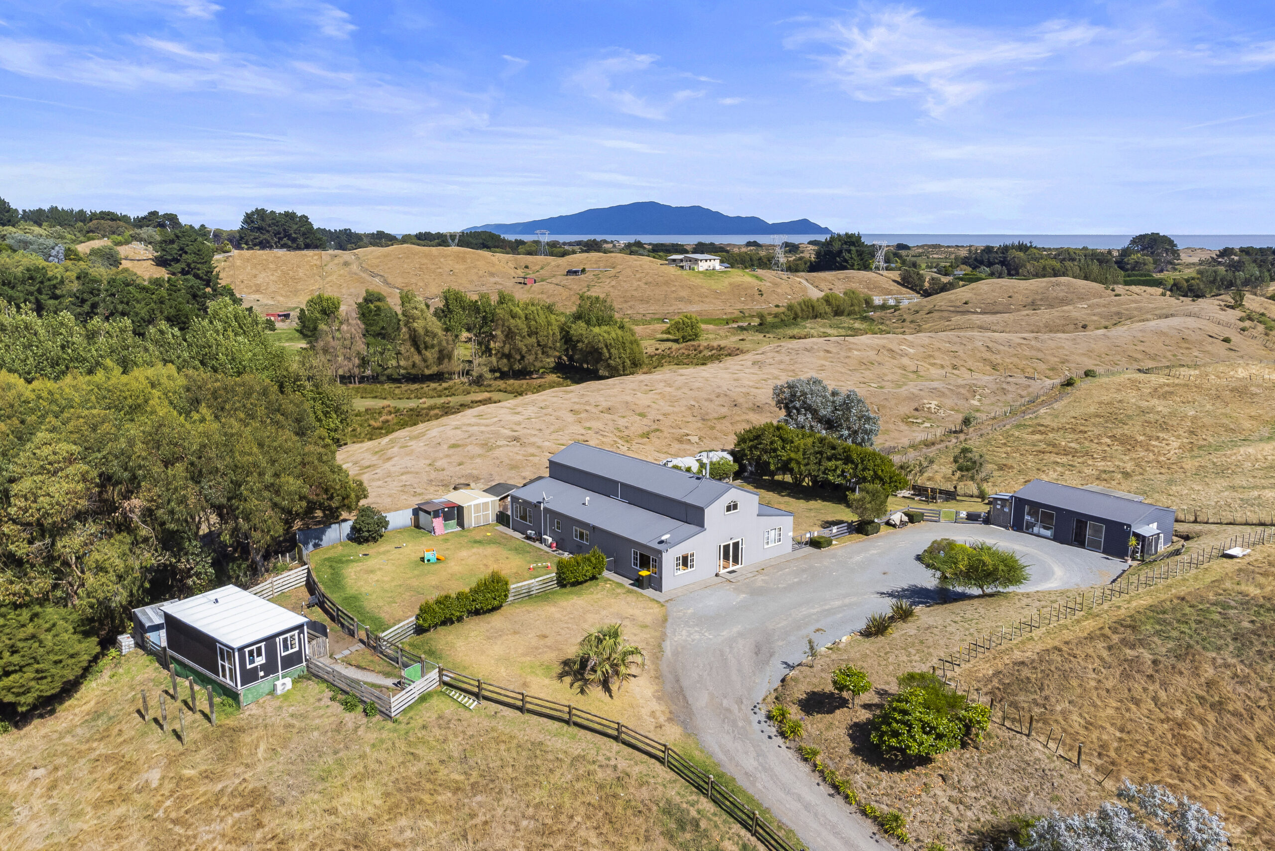 Introducing a rarely available opportunity for one lucky owner to enjoy a complete change of pace & an absolutely wonderful lifestyle set within one of the most convenient of Kapiti Coast locations. Are you looking for a fresh start, a very special next move which offers impressive panoramic rural views, great sun & natural offers further future potential, all this & more, privately set within 5.2 acres to grow or graze. The American Barn styled family home has a spacious floor area of 258sqm set over two levels plus a separate garage & studio & features: big picture windows framing the stunning panoramic views of the distant Tararua Ranges which are snow topped in winter, five bedrooms & two bathrooms (including master ensuite), wide open plan living & dining for perfect flow & functionality. High speed internet for those wanting to work from home. Do you have horses? then this property has the plus of a horse arena in one of its four large well fenced & watered grazing paddocks, your horses graze within sight of the house. Excellent parking & turning for your horse truck & a stock gate with easy access from the road, you can even ride your horses on the beach easily from here. This fabulous location has two beautiful Kapiti Coast beaches within a gentle amble for horses & dogs (no main roads to cross) or a leisurely few minutes’ drive, run or bike ride for their owners. All in just under an hour’s drive to Wellington City.