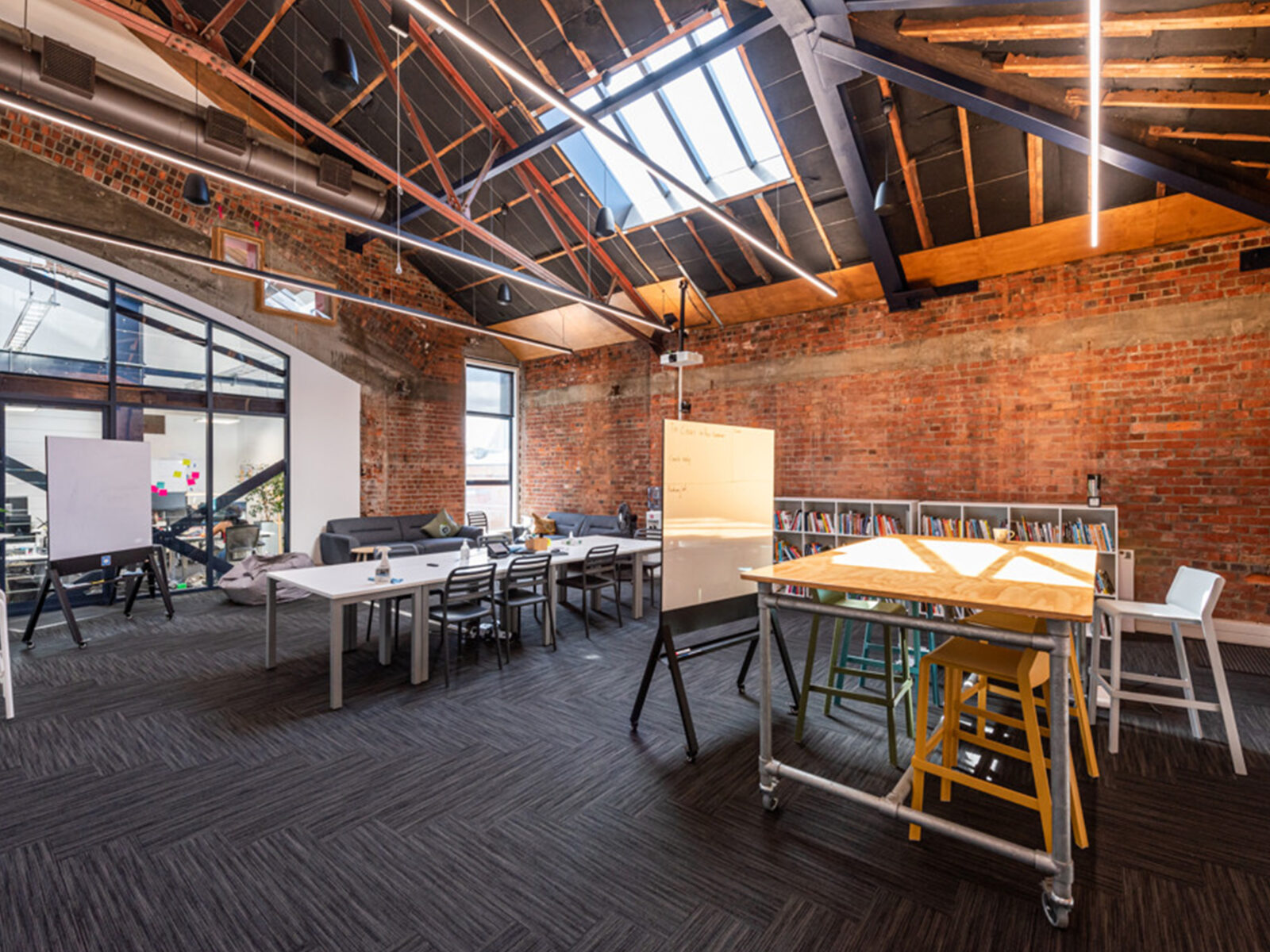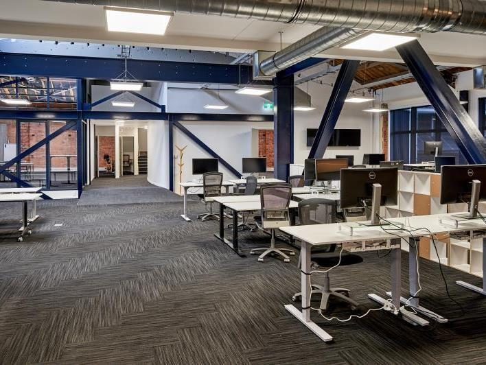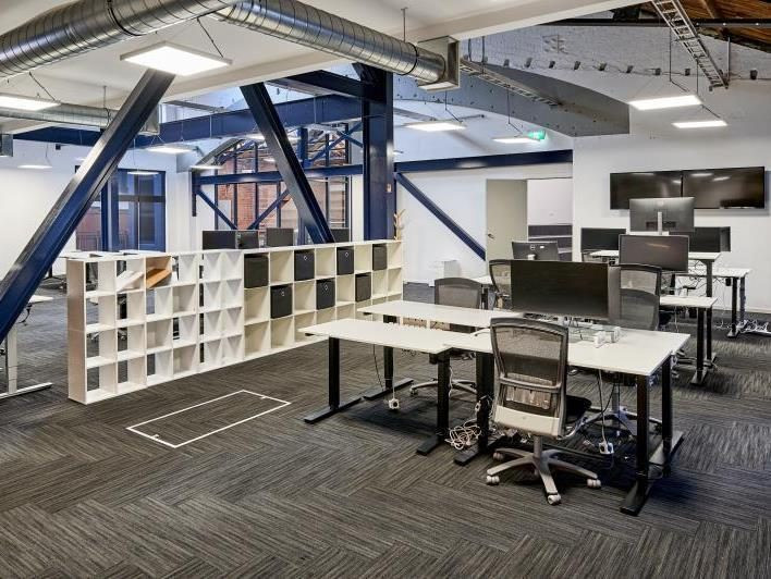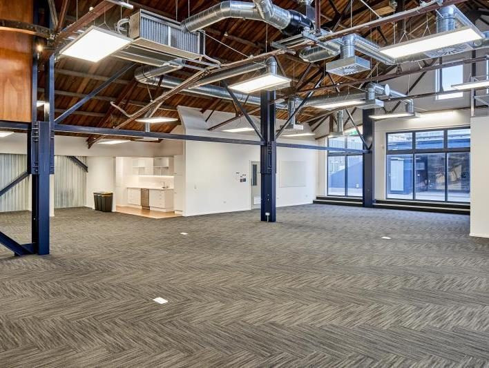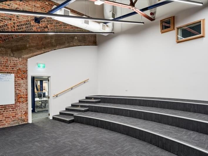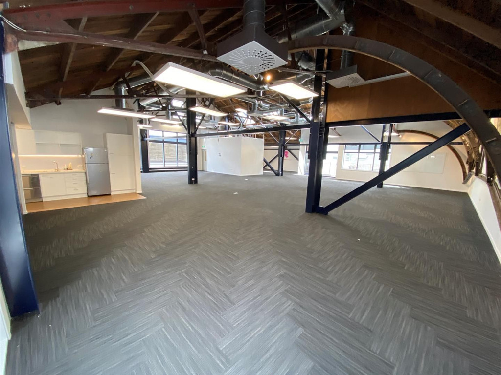 The fit and finish include multiple meeting rooms, kitchens and bathrooms, a large lecture-style presentation room, and open-plan office areas. This unique character space boasts exceptional attention to detail, with high-quality fixtures and fittings throughout.
