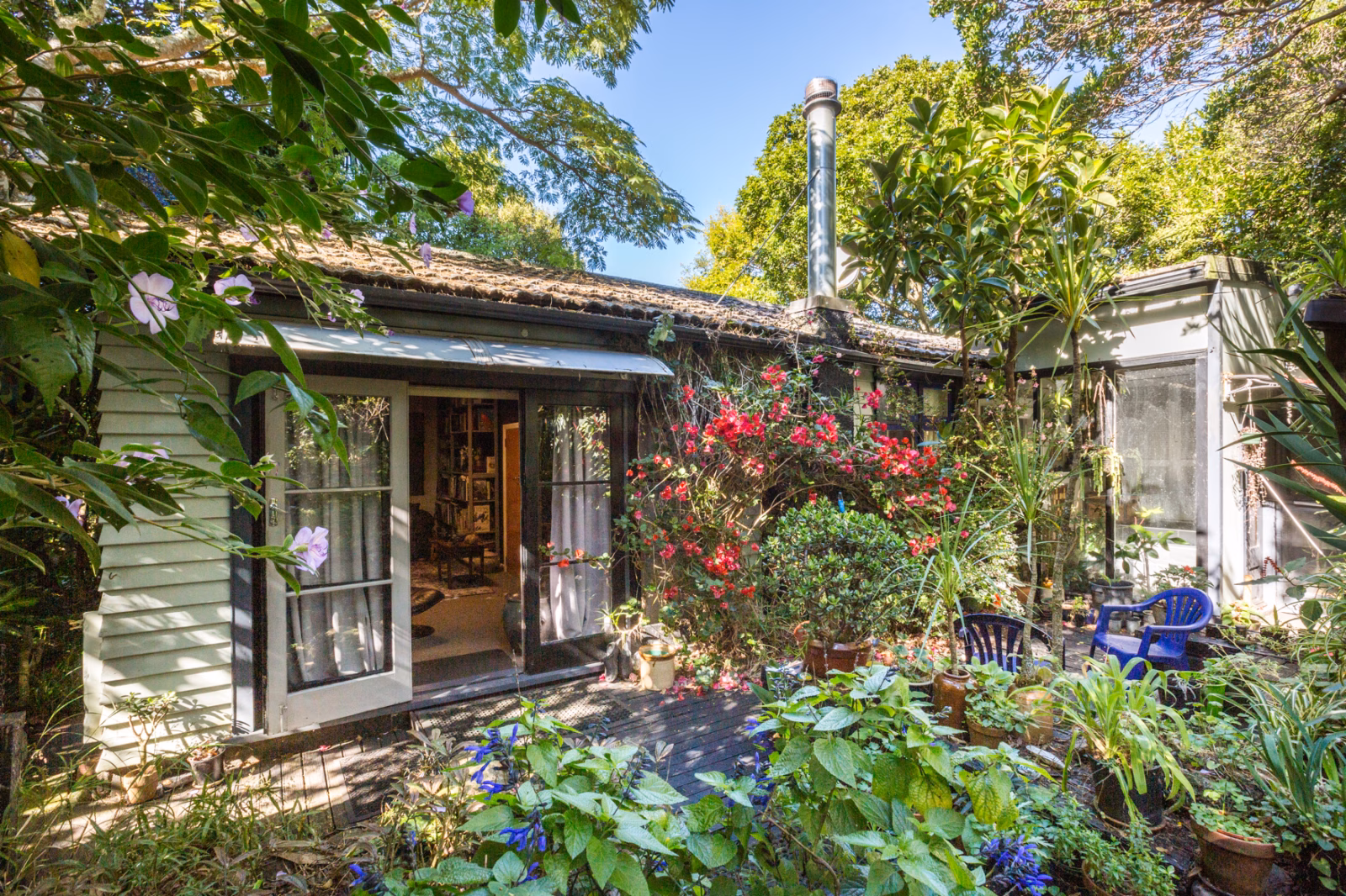 Each window in the home looks to the delightful greenery of the garden, the bush and bird love this calm sheltered spot, just live here and find all the magnificent plants which thrive on well mulched soil