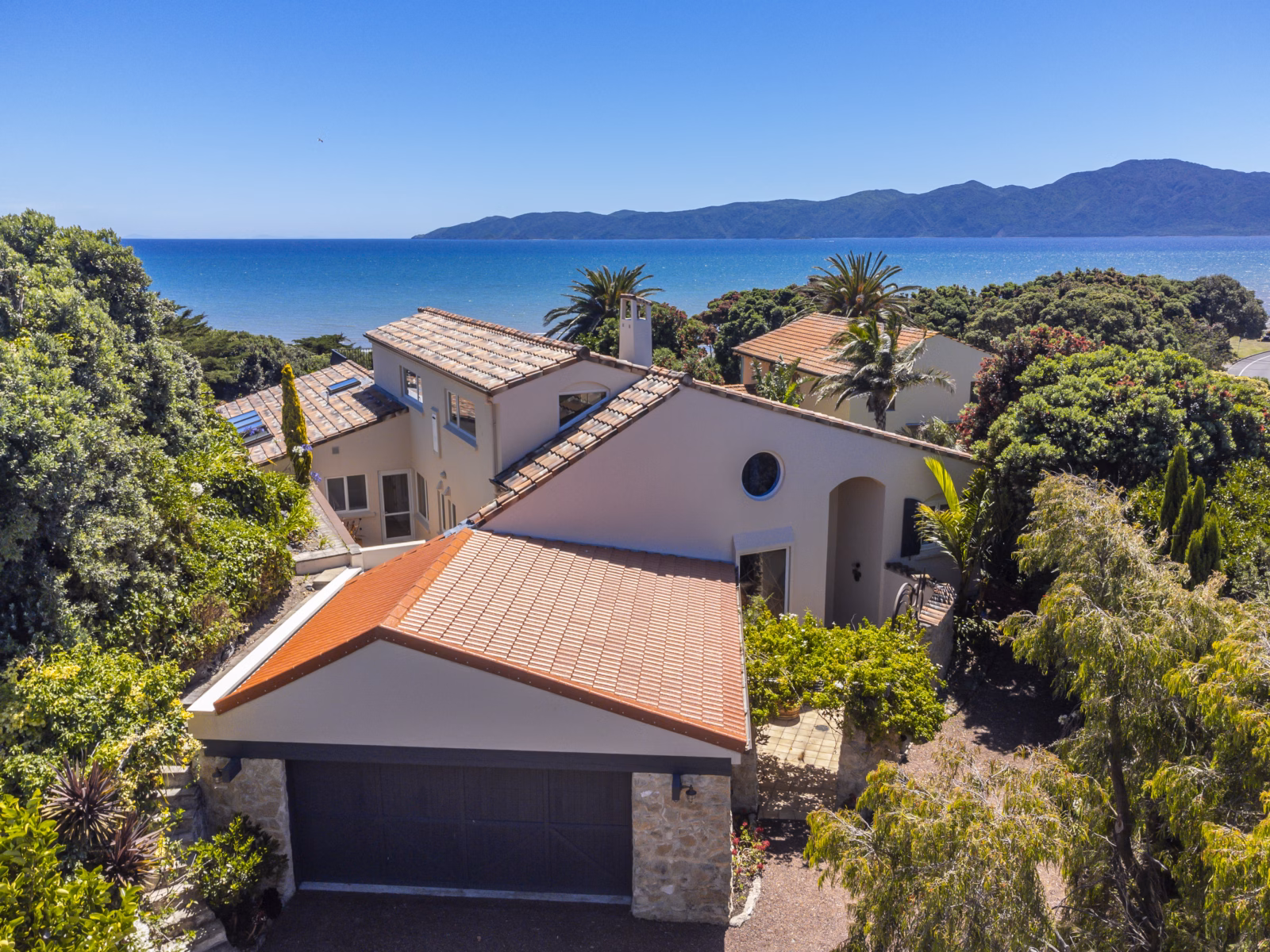 61 Wharemauku Road, Raumati Beach is on the market for the first time in its history. Purpose built for his own use by Roger Daniell, international award-winning NZ water-colour artist, designed to emulate the traditional character of French Provencal Country House style, with the same relaxing outdoor lifestyle focus of culture, wine, & food. Interiors optimise the light & sun; oversize window walls are positioned to frame the sweeping views of Kapiti Island & breathtaking panoramic coastline, the distant Kaikoura Ranges on the southern horizon, romantic sunsets & moonlight shadows across the water provide endless entertainment. Positioned for supreme privacy & shelter, the generous balanced proportions of the home & the detailed workmanship; from the lofty wide sun-gallery, sparkling in-ground swimming pool, crafted wrought-iron balustrades & archways, stained glass, expansive tiled floors, and magnificent stone fireplace, to the subtle integration of a custom-built Provence style French country kitchen, signify this residence as a very special property designed by craftsmen for an owner who knew exactly what he wanted. Additional features include: a luxurious master, 2 guest ensuite bedrooms, 4th bedroom/office & family bathroom, in/acc garaging. Upper level: mezzanine art studio & minstrel gallery, informal living with private deck. Your resort lifestyle is set on around 1,623sqm of sheltered lush grounds & courtyards, a private beach access setting & fabulous outdoor entertaining catering for your every need.
