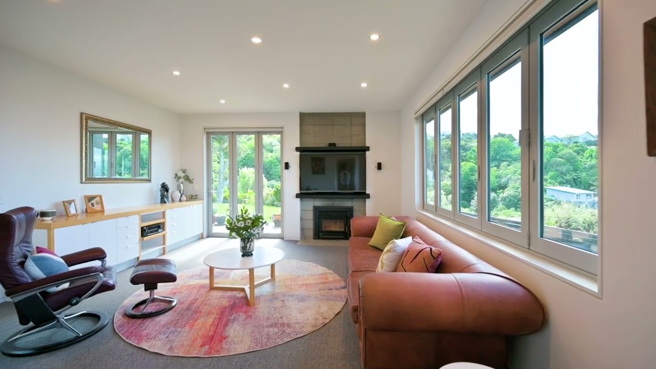 This magnificent contemporary 429m2 north-facing home elevated for sun and outstanding views of the surrounding hills and Wellington harbour, on an exclusive site near the end of a private right-of-way, has much to offer, including: